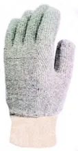 This high heat glove protects to 625 degrees. It features a 2 ply loop-in seamless terry material, tacked on finger tips and thumb to stop slippage and a reversible seamless pattern. Two-ply loop- in terry is a glove within a glove. The loops are turned in to prevent snagging and creates a superior R factor against heat, like insulation in a home.