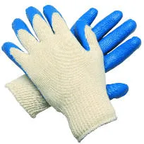 10-cut cotton/polyester string knit glove. Latex coated on palm and fingertips. Available in both ladies’ and men’s sizes. Sold by the dozen pair.