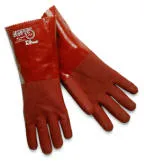 This premium double-dipped red PVC glove features a jersey lining and a sandy finish of a PVC/nitrile blend that provides excellent chemical resistance, wear and flexibility. Generously sized, the industrial applications for this color glove provides the maximum protection from acids, caustics, mining and refining.
