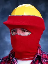 Safety helmet liners keep the cold wind out, trap warmth inside and prevent moisture build-up. Knitted from flame-retardant spun polyester, they are available in two styles. The Cap Style comes in Orange polyester. The Full-Face Style comes in Red polyester. One size fits all. Sold individually.