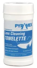 Pop up canister contains 100 moistened towels. Anti-fog, Anti-static formula.