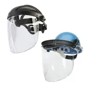 Ratchet style adjustment for easy fit. Pivoting action allows user to lift faceshield while wearing.