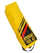 The #439 is the largest of our Hydrant Tool Kit bags. Holds your hydrant tool and related items. Attaches to hydrant end of hose and need not be removed when charging the line, as the straps are made of 2" webbing and Velcro and will attach to 2½" - LDH hose. Constructed of 22oz vinyl, it measures 27" X 9" X 6", and will hold a 5" coupler. Wt. 20 oz. Color: Yellow