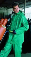 When safety matter the most in chemical plants, refineries and environmental clean ups, give your workers these suits constructed of tough nylon scrim material with two thick layers of PVC for a combined thickness of .42mm. The suits are flame retardant and offer the best protection against many chemicals and acids. Green color offers easy identification. Please specify size when ordering. Sold individually.