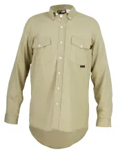 Features: NFPA 2112 UL Certified, ASTM F1506 Electric Arc Protection, NFPA 70E Hazard/Risk Cat HRC2, Max Comfort™ 6.5 oz. 88% cotton/12% nylon FR sateen fabric, Sewn with Nomex® Flame Resistant thread, Two needle top stitching on major seams, Adjustable cuffs with 2 buttons at bottom of sleeves, Extended back tail to stay tucked in, One pleat at bottom of sleeves, Button down lined collar maintains shape for better look, 2 chest pockets, Left pocket with pen tunnel, 1/16?