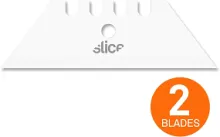 Slice® Utility Blades with pointed tips are compatible with multiple Slice tools including the Metal-Handle Utility Knives, the Small Scrapers, the Mini Cleaver, and the EDC Pocket Knife. Pointed tips allow you to initiate a cut by puncturing and are particularly useful for cutting tough materials. The blades are finger-friendly®, so cause fewer and less severe injuries than traditional blades, and they’re also non-conductive for added safeguarding. Reversible blade doubles lifespan.