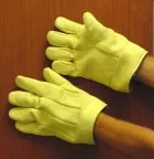 3.5 oz. pearl grey split leather. Quilted leather patch on the palm. VELCRO® closure at back of the wrist.