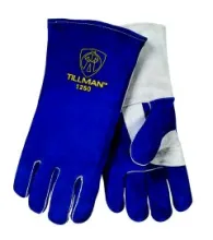 Premium grade blue side split cowhide, insulated cotton/foam gives welders additional heat protection. Kevlar® stitched for added strength and resists heat, welted fingers and wing thumb design to give a most natural feel and a double reinforced thumb to give added protection on key thumb stress areas to maximize wear. Glove is 14” in length. Men’s sizes. Sold per pair.