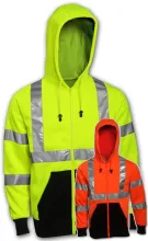 FEATURES & BENEFITS: ANSI/ISEA 107 Class 3 Compliant Sweatshirts. Hooded. Polyester Material. 2” Silver Reflective Tape. Zipper Closure. 2 Pockets. Sizes S-5X. Available in Lime and Orange.