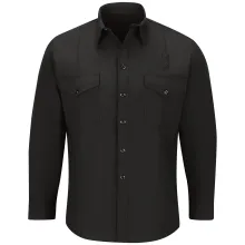 Autoclaved with Workrite Uniform's PerfectPress Process for a professional appearance. Sewn-in military creases. Banded collar. Pencil slot and badge tab. Hidden front snap closure and hook-and-loop pocket closures. 4.5 oz. Nomex IIIA.