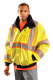 Includes all of the great features of our original bomber jacket. Class 3, 2” 3M™ Scotchlite™ Reflective Material: One 360° horizontal, Two vertical, and four 360° horizontal sleeve. 100% ANSI Polyester with PU coating - breathable, waterproof with sealed seams. Removable 100% black polyester fleece liner. Can be worn 4 ways.Removable outer jacket sleeves. Black collar, cuffs and waistband. Rollup and removable hood. Weather resistant construction. Pockets: 2 outside, 1 inside, 1 radio. Zipper and snap closure. ASTM F 2732 Temperature Rating: 2.5° – 21°F