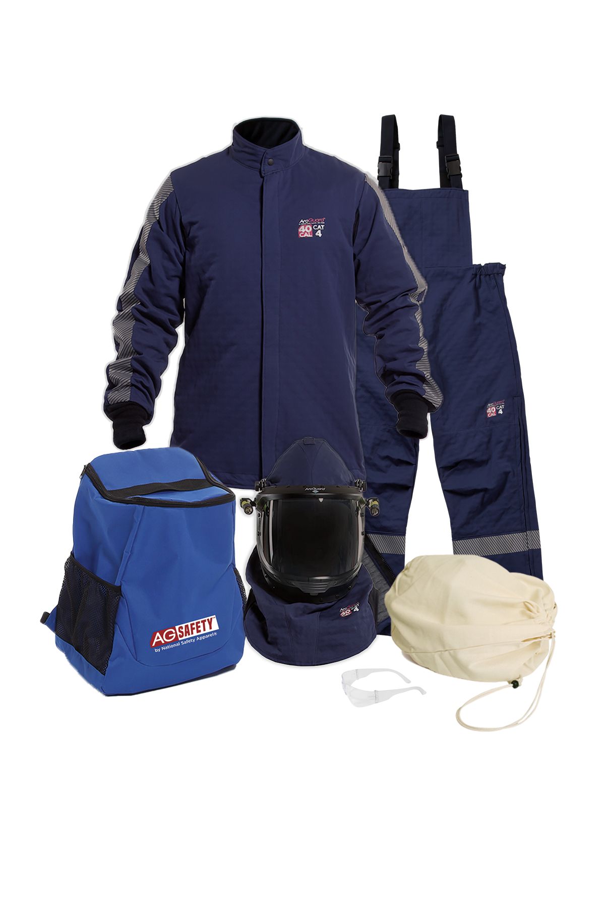 The 40 cal ArcGuard Performance arc flash kit provides protection head to toe. Arc Rating: 41 cal/cm². CAT 4. Fabric/Material: 9.5 oz GORE® PYRAD®. Up to 20% lighter, 48% thinner, & 56% more flexible than other premium arc flash suits. Single layer 40 cal arc flash protection. Using GORE® PYRAD® comfort science to keep the wearer cool, dry, comfortable and unrestricted while working. Ergonomic design for ease of movement and flexibility. Covered zip front closure with large pull tab. 26" leg zippers for easy donning & doffing. PureView™ faceshield technology features a greater range of visibility. Made in the USA.