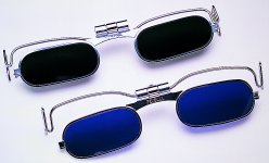 Fits onto the brim of hard hat or bump cap. Worn in conjunction with existing safety eyewear. Integral spring clip holds them securely without the use of screws fasteners or tools. Quickly flip down to enhance vision then flip up when not needed. Available in half or full lenses in green welding shades 4 5 6 8; and cobalt blue shades 4 6 and 8; and didymium full 48mm lift front filters.