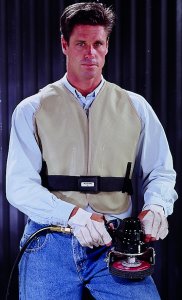 Our patented Air Cooling Vest may be connected to any clean compressed air source and worn under protective clothing. It weighs only 1½ lbs. It is durable and breathable. One size fits 130-225 lbs. Air Consumption: 5-15 cfm at 100 psi. Airline hose available in 50' and 100' lengths.