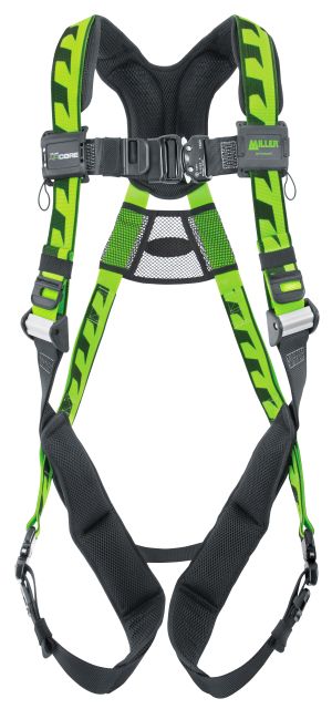 The new Miller AirCore™ Harness is now available with lightweight, corrosion-resistant aluminum hardware. This new line of AirCore harnesses with aluminum components provides the ultimate in performance and comfort. Features/Benefits: Lightweight - Aluminum materials and components selected to reduce fatigue for all-day endurance and increased productivity. 16% lighter in weight than competitive harnesses with aluminum hardware 20% lighter than harnesses with steel hardware. Extended Service Life - Corrosion-resistant aluminum hardware lasts longer, reducing replacement costs.