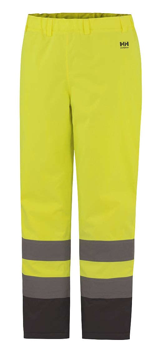 Features: Elastic waist w/draw cord & cord lock, Inside kneepad pockets, Boot zip and velcro adjustment at hem, and Loop inside waist for ID card. Available in Hi-Viz Orange/Charcoal or Hi-Viz Yellow/Charcoal. Sixes S-4X.