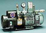 Cost effective ambient air pumps protect workers in supplied air environments. Special design supplies clean, breathable air to NIOSH approved respirators. Pumps are portable and oil-less for convenience. Produce no carbon monoxide, oil vapor, or oil mist, thus eliminating the need for carbon monoxide monitoring and alarm systems. Easy to maintain - only 1 moving part. Rotary vane pumps use 4 carbon vanes that last for 5,000 to 15,000 hours of continuous running. Ideal for painting/refinishing, chemical handling/clean-up, and hazardous materials handling/removal. Fully assembled including all fittings (Schrader, Hansen, or OBAC), filters, couplers, carrying handle, rubber feet and electric.