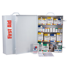 Solid steel case comes with a carrying handle and is wall mountable. Contents exceed the 2015 ANSI Class B requirements and are sufficient to treat 150 to 200 people.