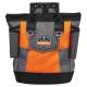 Meets the ANSI/ISEA 121-2018 standard. 1680D ballistic polyester is abrasion resistant. Accommodates a variety of hand tools, small parts, and hardware. One-handed snap-hinge closure to maintain three points of contact. Two exterior and two interior D-rings for carabiner and tool lanyard attachment. Two tool loops for holstering larger tools like, spud wrenches, bull pins, & other long tools. 8 interior tool slots for organization. Interior fleece-lined pocket for cell phones. Nickel-plated storm drain for ventilation. Modular buckle connection system on back for easy attachment and removal to fall protection harnesses and tool belts. Reflective strip for safety and visibility. Bright orange interior fabric makes finding and seeing contents easy. Webbing thumb tab and handle for easy opening and closing. Maximum safe working capacity: 20lbs // 9kg. Maximum d-ring tethering capacity 5lbs // 2.3kg. Third-party certified to a 2:1 (dynamic) and 5:1 (static) safety factor. 10in L x 6in W x 11.5in H // 25cm x 15cm x 29cm