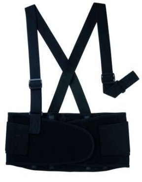 Removable 1-1/2" elastic suspenders with hook & loop tabs for safety. Rubberized stay covers keep belt in place.
