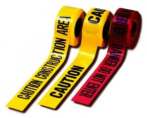 Identify hazards and mark traffic areas. Ideal for use at construction sites, spill sites or anywhere you need to barricade an area. Constructed low-density polyethylene tape with bold, black imprints. Lettering appears in all caps. 1000'L x 3"W on 3" core. Messages repeat every 14" Sold per roll.
