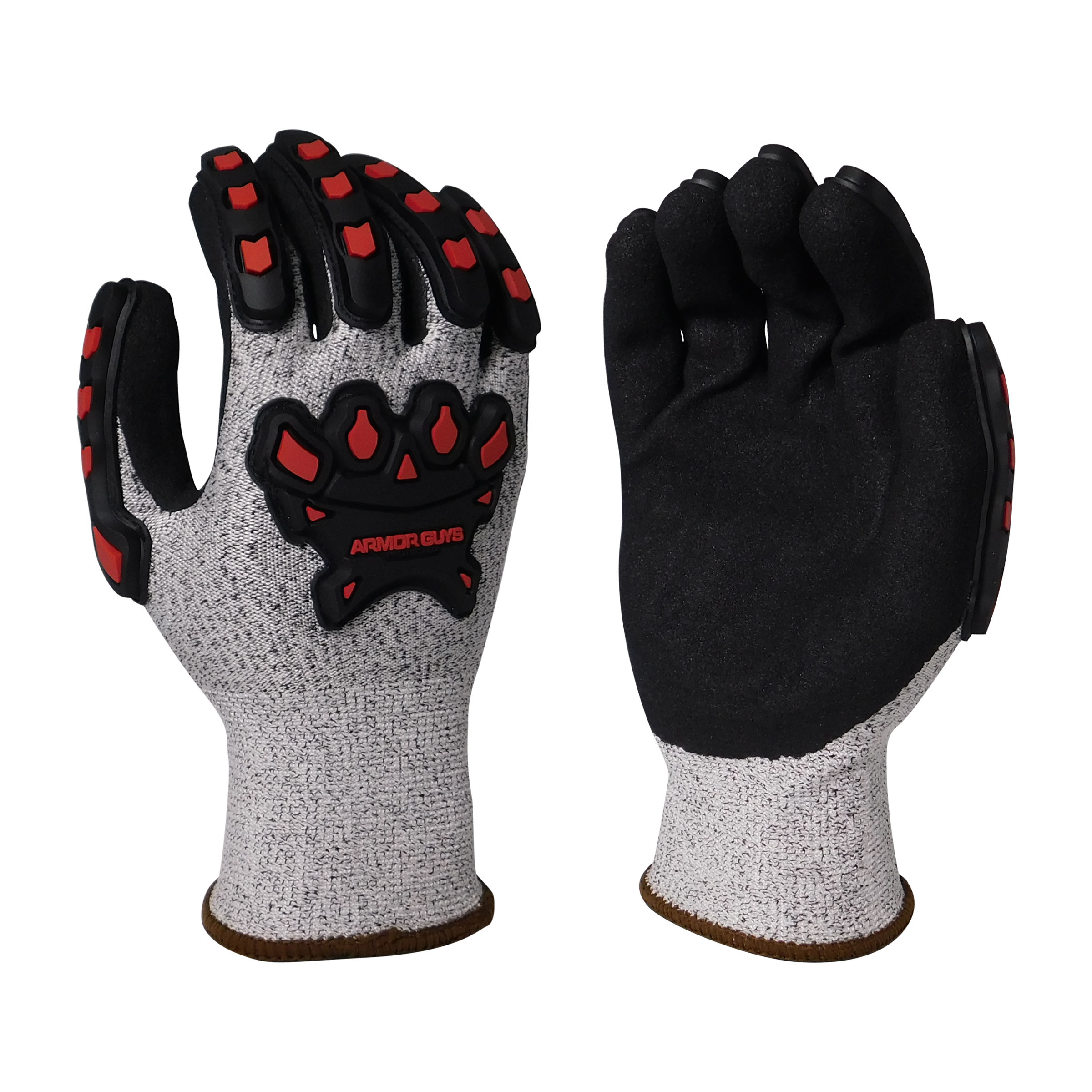 13g Salt And Pepper HDPE Liner With Black Micro Foam Nitrile Palm Coating, Padded Gel Palm And Back Of Hand TPV, ANSI A4. Can be used in Construction, Oil & Gas, and Mining applications