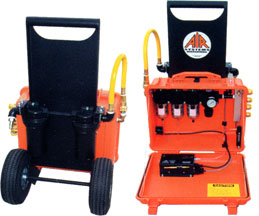 The Blast Air Cart has been designed for the commercial sandblast/paint industry and industrial plants that need advanced, high capacity air filtration. The Blast Air 50 pictured above is Air Systems' standard 50 cfm Breather Box mounted on a BA-1C prefilter cart. These rugged pre-filters automatically drain large amounts of oil and water from mobile compressors before it enters the Breather Box. This process will extend the filter life of the Breather Box and reduce maintenance downtime and costs. Any of our portable Breather Box models can be fitted to our BA-1C Blast Air Cart.
