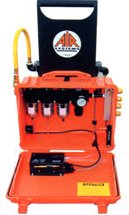 The Blast Air Cart has been designed for the commercial sandblast/paint industry and industrial plants that need advanced, high capacity air filtration. The Blast Air 50 pictured above is Air Systems' standard 50 cfm Breather Box mounted on a BA-1C prefilter cart. These rugged pre-filters automatically drain large amounts of oil and water from mobile compressors before it enters the Breather Box. This process will extend the filter life of the Breather Box and reduce maintenance downtime and costs. Any of our portable Breather Box models can be fitted to our BA-1C Blast Air Cart.