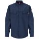 (NAVY) Topstitched collar with red trim at neck seam › Topstitched cuffs with two-button adjustable closures › Hemmed front placket with button closure › Patch chest pockets with reinforcement› Gas monitor pocket at front shoulders › Full side seam gusset. Fabric Exclusively with Westex G2™ fabrics by Milliken® - Flame-resistant, 6.9 oz. (235g/m2) Ripstop Twill, 65% Cotton / 35% Polyester. Arc Rating ATPV 9.0 calories/cm².