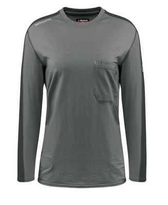 Bulwark FR Women's Flex Knit tee gives you the stretch of your favorite T-shirt while keeping you cool and dry. The lightweight fabric flexes for added comfort and range of movement, curved flatlock seams for optimal fit, unique front pocket design with pencil stall. CAT 2/2112 left sleeve label leaves no question you’re protected on the job site.