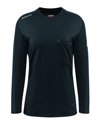 Bulwark FR Women's Flex Knit tee gives you the stretch of your favorite T-shirt while keeping you cool and dry. The lightweight fabric flexes for added comfort and range of movement, curved flatlock seams for optimal fit, unique front pocket design with pencil stall. CAT 2/2112 left sleeve label leaves no question you’re protected on the job site.