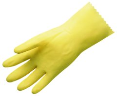 Unlined 18 mil thick natural latex provides strong protection against chemicals and punctures while retaining good sensitivity. Chlorinated finish enhances durability and strength. Embossed diamond grip provides sure handling under wet or dry conditions. Protects against acids, detergents, salts, caustics, animal fats, vegetable oils and alcohols. Ideal for food processing and canning applications. 12" length. USDA accepted. Sizes 7 - 10. Sold per dozen pair. CAUTION: Natural rubber products contain proteins which may cause allergic reactions in some individuals.