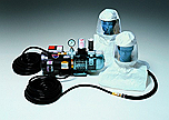 Constant Flow Full Respirator Hood Systems are designed for easy handling and use. Complete with ambient air pump, supplied air respirator hood, breathing tube, belt 50ft. air hose, and all necessary fittings. Pumps are portable and oil-less, produce no carbon monoxide, oil vapor, or oil mist, and eliminate the need for carbon monoxide monitoring and alarm systems. Fully assembled and complete with filters, fittings and couplers. Disposable hoods are ideal for painting and convenient for workers with beards. Unique "over the shoulder" hose clips at the collar. Adjustable web belt with clip, secures air hose away from work zone. Respirators are NIOSH/MSHA approved for use with a maximum hose length of 100ft.