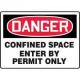 DANGER CONFINED SPACE ENTER BY PERMIT ONLY - Confined space sign alerts that entry can only be made when authorized by permit only. Restrict entrances to confined spaces by posting in entryways. Confined space sign is perfect for alerting workers of conditions and restrictions. Traditional OSHA-style signs, tags and labels are the most widely recognized design format in the industry. Danger header indicates a hazardous situation that, if not avoided, will result in death or serious injury.