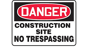 DANGER CONSTRUCTION SITE NO TRESPASSING - Prevent unauthorized people from trespassing at your construction site with this signage.