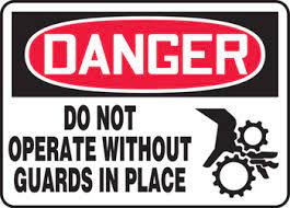 DANGER DO NOT OPERATE WITHOUT GUARDS IN PLACE (GRAPHIC) - Ensure workers follow safety protocols by reminding them of mandatory guard usage.