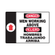 DANGER MEN WORKING ABOVE (ARROW) (ENGLISH, SPANISH) - Inform people that there are men working above so that they can be aware.