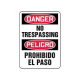 DANGER NO TRESPASSING (ENGLISH, SPANISH) - Prevent unauthorized access to dangerous areas by using this bilingual sign.