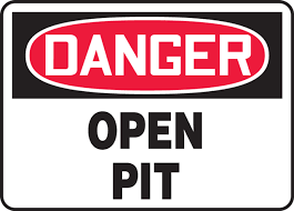 DANGER OPEN PIT - Warns people of an open pit in the vicinity so that they are careful.