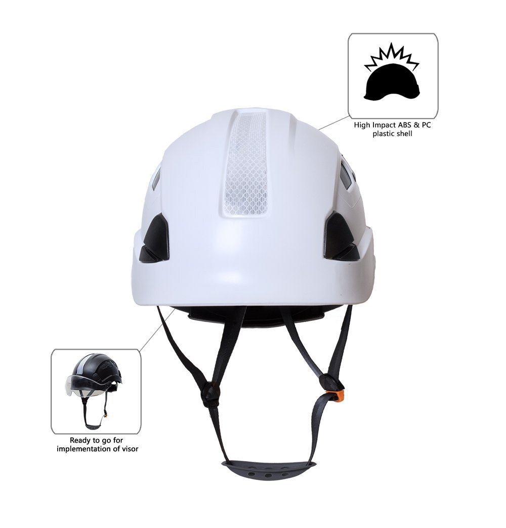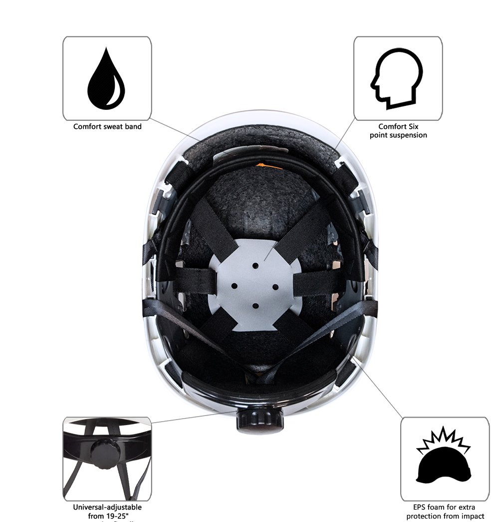 Optional Visor Kit. OSHA Approved for your JobSite. Features: ANSI Z89.1 2014. Sliding breathable vent system on top of the helmet provides ultimate adaptability. Headlamp, Visor & Earmuff Attachment Points. Chinstrap with chin-cup for extra security. Suspension System for extra top impact protection. Hi-Viz Design with front & back visibility. Comfort + Sweatband developed specifically for construction applications. Lateral chin strap adjustment. Universal size.