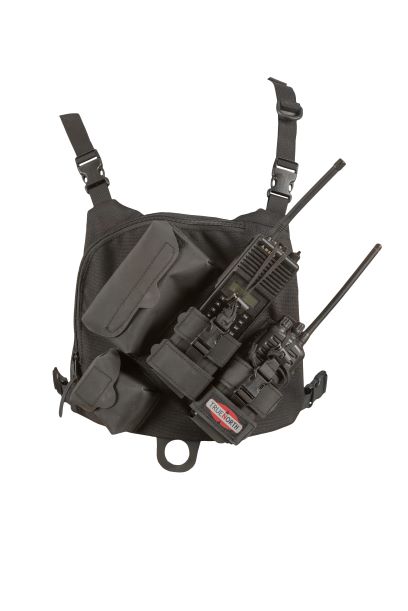 Designed for greater comfort and function. Our radio harness sits comfortably on your chest, without sagging or swinging, due to unique suspension system. Elastic straps keep radios in place when bending over. Can also be mounted directly to your web gear shoulder harness with optional radio chest integration straps.