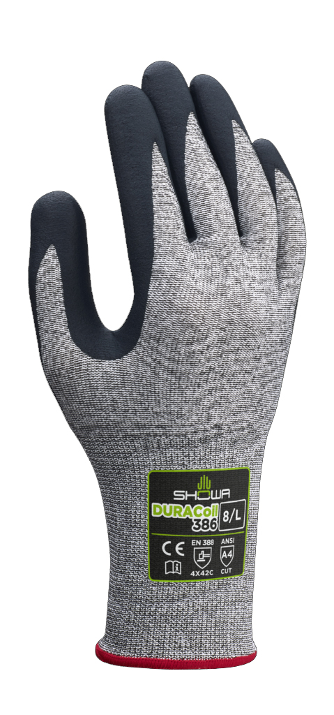 The DURACoil 386 utilizes our advanced HPPE reinforced lining to provide cut and abrasion resistance, without sacrificing dexterity. The microporous coating disperses oil to increase grip. So even for tasks on a smaller scale, such as component assembly, the 386 enables a full range of movement and control.