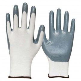 13g White Nylon Liner With Gray Foam Nitrile Palm Coating, provides optimal oil grip, and can be used for General Assembly, Light Manufacturing, Maintenance, and Warehousing applications
