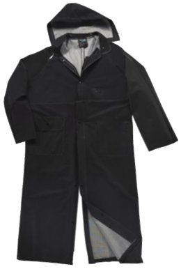 35mm flame resistant PVC on polyester with a detachable hood. Sizes: M-4XL.