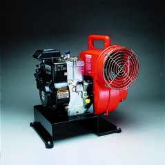 Perfect for remote location where electricity is unavailable, this gasoline-powered, 3 ½ hp blower offers high flow rates. The 8" ports and steel guards provide safety and the ABS housing with built-in handle offers durability and convenience. It is designed with unique spring-loaded feet that minimize blower walking and offer greater stability. 2 quarts of gasoline will power 2-3 hours of running time. Blower includes 10 foot metal exhaust hose. Weighs only 44 lbs. Free air output: 2000-3000 cfm.