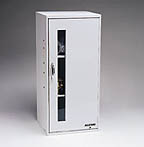 Heavy-duty, steel cabinet includes three adjustable shelves, handle and inspection window. This durable, convenient cabinet also includes Label Kit with 17 custom labels. Exterior: 14"w x 13"d x 30"h