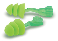 Twist In Triple Flange Earplugs. Like a fingerprint, no two ear canals are alike. Glide's unique multi-curved stem rotates for a custom fit inside each ear canal. With its unique curved stem design, you simply push & twist for Glide to angle its way to find your fit. FEATURES: (1) Unique multi-curved stem rotates for a custom fit. (2) Large handle on curved stem for easy insertion & removal. (3) Soft triple flange plug can be washed and reused. (4) Cord can be attached at any desired length. (5) Look for the bright green color as a symbol of Moldex quality. (6) 100% PVC-Free®, like all Moldex products & packaging - for a greener alternative. (7) Made in U.S.A.