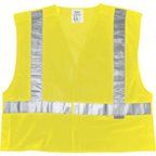 ANSI-compliant polyester mesh (3.3 oz.). Zipper closure. 2" Level 2 ANSI-compliant reflective material. Pockets: One inside, two outside. Single radio mic tab. Available in Lime or Orange.