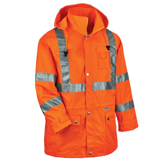 The GloWear 8365 Hi-Vis Rain Jacket is a Type R, Class 3 Jacket that offers waterproof, breathable protection against the elements. Made with a breathable polyester shell that keeps water out while letting moisture escape to keep you cool and comfortable working in the worst conditions.