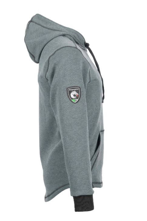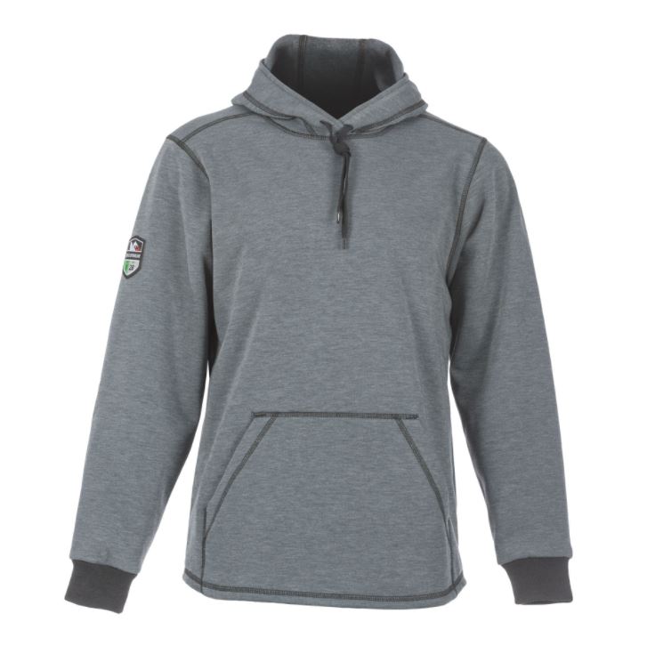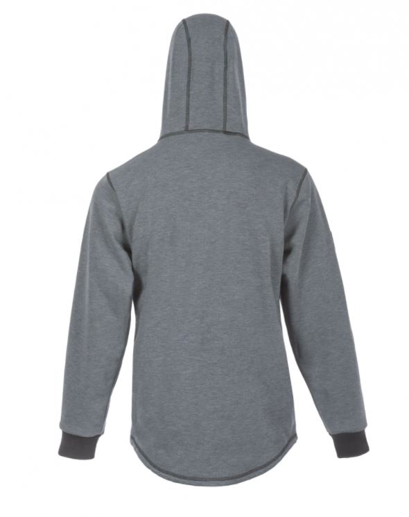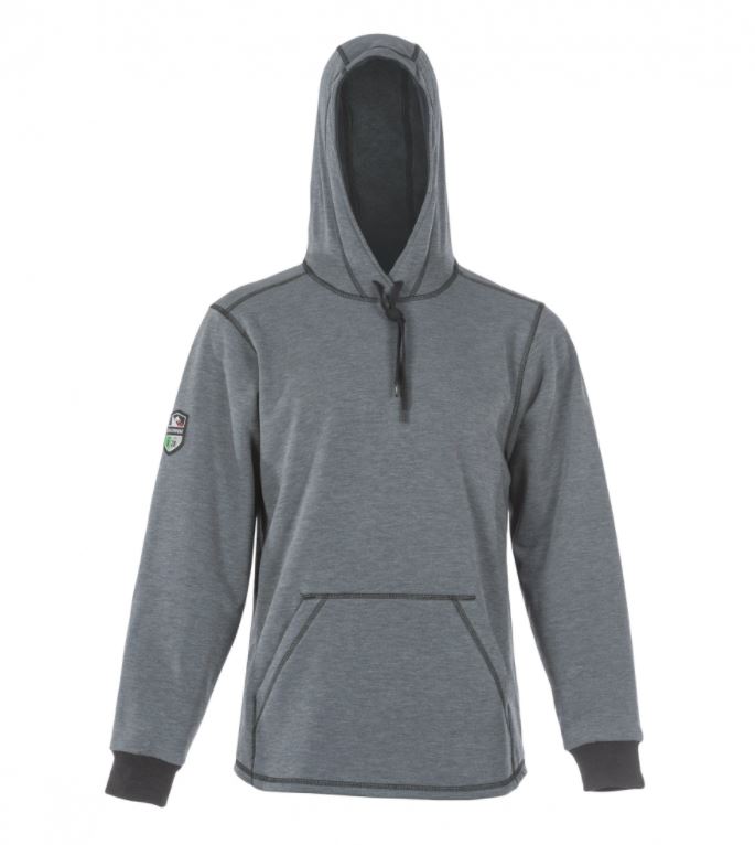 *Grey* Developed to provide superior comfort and freedom of movement in non-stop work environments, this 4-way-stretch hoodie is an ideal mid-layer or outerwear garment for the demands of any season. Ride out hazardous weather in comfort and style wearing our NEW Elements™ Cyclone Pull-Over Hoodie. Constructed from DragonWear® Inherent Tri-Blend Elements™ FR Fabric, a wind-repelling outer surface and durable water-resistant finish guards against fierce weather. Developed to provide superior comfort and freedom of movement in non-stop work environments, this 4-way-stretch hoodie is an ideal mid-layer or outerwear garment for the demands of any season. Functionality and useful design stay at the top of the list with a 3-panel, hard-hat friendly hood design that can be adjusted to ensure unobstructed peripheral vision, a hidden cell phone pocket inside the front Kangaroo pocket, and extra-long sleeves with knit cuffs that prevent wind gusts up the arm. This powerhouse hoodie levels up with advanced air permeability technology for a true comfort experience in the windiest of environments. When the wind blows, you won’t be afraid to howl back in our Elements™ Cyclone Pull-Over Hoodie. Features: Inherently fire and arc-resistant, Superior wind-repellent with durable water-resistant finish, 4-way-stretch fabric provides superior comfort and freedom of movement, 3-panel, hard-hat friendly hood design with draw cord for adjustment, Multiple pockets- including hidden cell phone pocket, Drop tail rear hem to provide extra coverage, Extra-long sleeves with knit cuffs that prevent wind gusts up the arm, Modern fit with contrast stitching for style, Ideal mid-layer or outerwear piece for the demands of any season, Made in the USA. Materials: DragonWear® Inherent Tri-Blend FR Fabric; 12 oz/sq y. CAT 3, Arc Rating 28 cal/cm2. NFPA 70E (Standard for Electricity Safety in the Workplace). NFPA 2112 (Standard on Flame-Resistant Garments for Protection of Industrial Personnel Against Flash Fire).